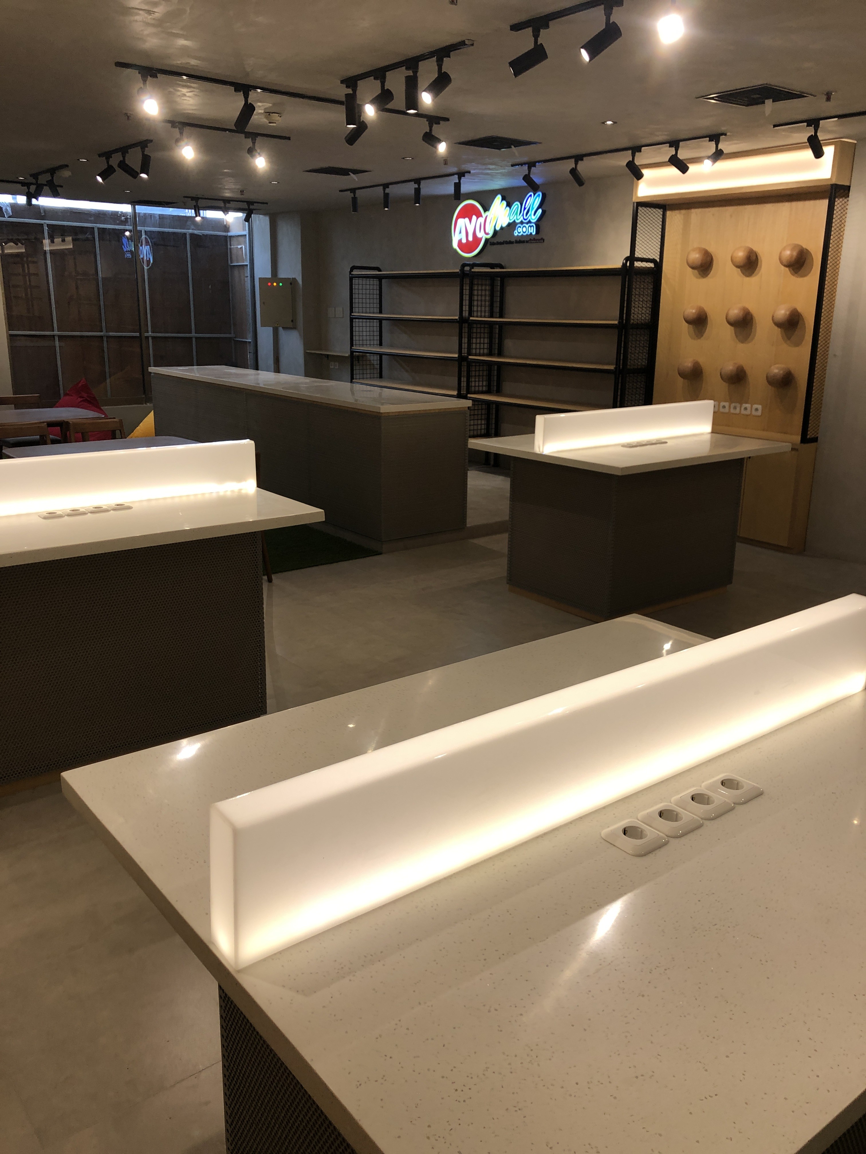 Drive thru Electronic and IT accessories store located in the Central Jakarta with a semi-industrial concept style and rustic furniture. To RESTORED the New Industrial Aesthetics we aimed and support with the Highly Technologically equipments.