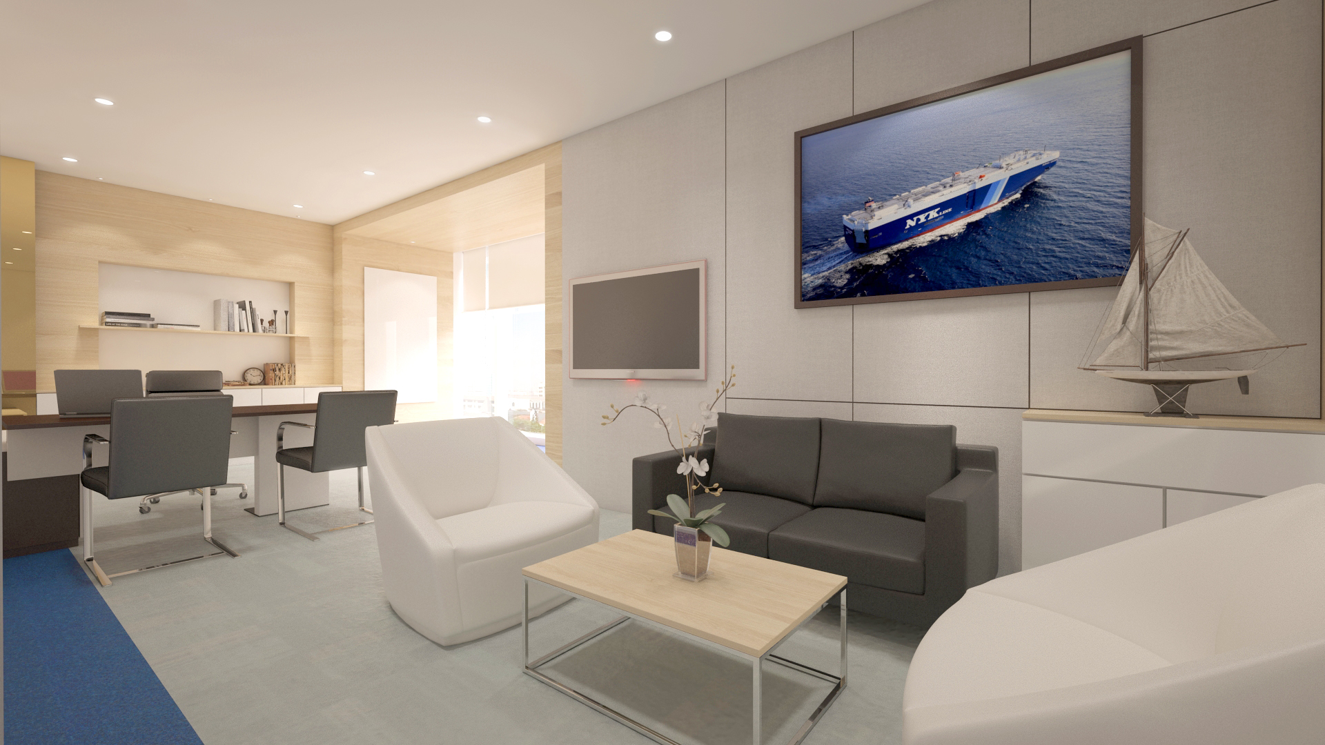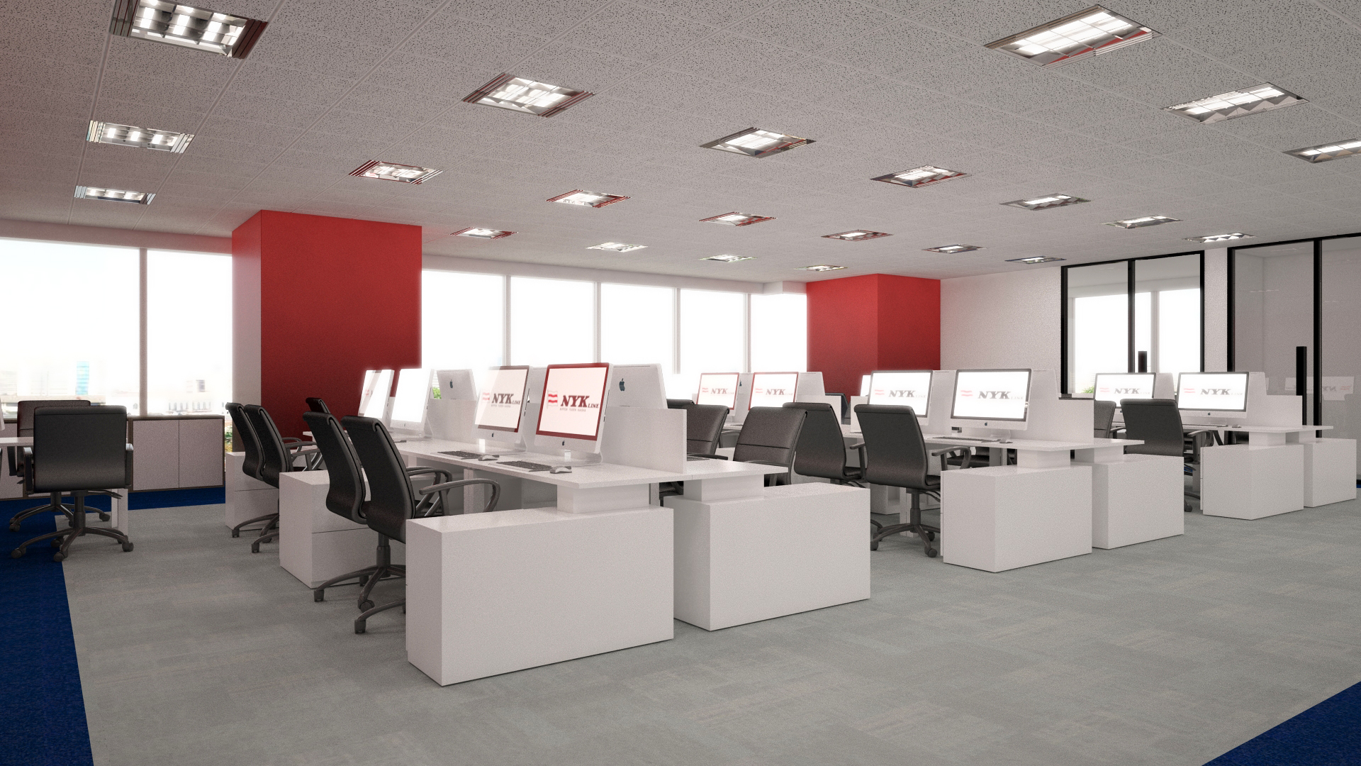 To emphasize and creating space that can stimulate effective working circumstances with pride, clean and fresh atmosphere. Playing with forms and shapes to make as a unity form spaces and a bit of deconstruction form as an accent and features .
